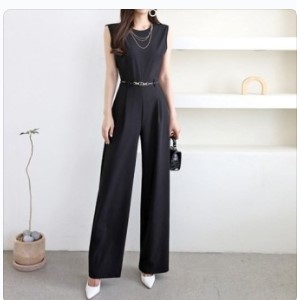 드레스를 선호하지 않는다면 **퀼로트 점프수트**로 현대적인 미니멀리스트 미학을 완성할 수 있습니다. 와이드한 실루엣과 구조적인 탑이 결합되어 패셔너블하고 자연스러운 룩을 연출합니다. 미니멀한 액세서리와 포인티드 토 플랫으로 마무리하여 트렌디한 룩을 연출해보세요.